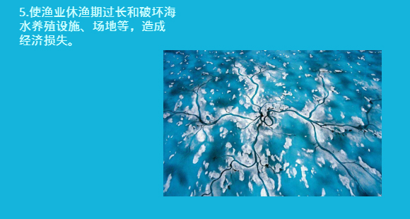 5)使渔业休渔期过长和破坏海水养殖设施、场地等,造成经济损失。