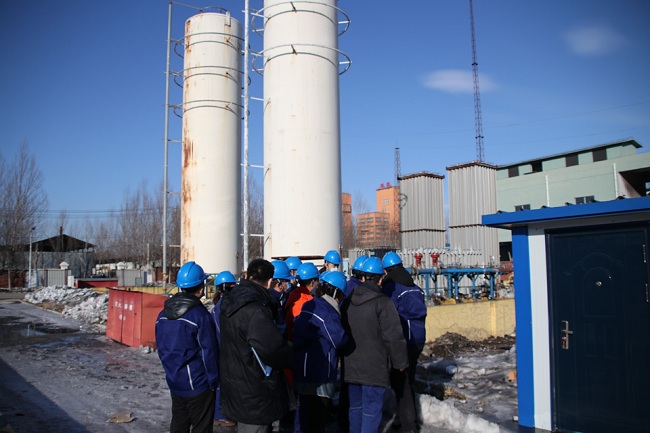3月7日,督导组来到京燃鹤岗燃气有限责任公司(以下简称“鹤岗燃气”)位于鹤岗南郊的厂区,厂区内有燃气储气柜1座、LNG(液化天然气)低温储罐2座,供应居民燃气用户6.76万户,工商餐饮燃气用户1162户。