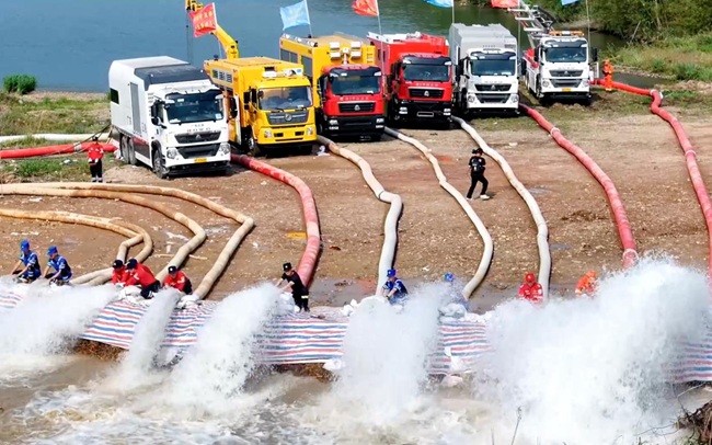 演练突出科技赋能与实战导向,集中展示智能排涝机器人、子母式排涝车、垂直供排水抢险车等高效装备联合作业。吊臂式排涝车单台最大排水量达6000立方米/小时,迅速化解韶关大道下沉式隧道内涝险情;翼龙-2大型无人机搭载应急通信载荷,恢复灾区半径2公里公网信号,复合翼无人机通过热成像实时回传灾情影像,为指挥部决策提供精准数据支撑;H-175直升机搭载应急航空特战队员索降开辟临时起降点,协同“蜂巢吊篮”实现25人批量空中转移,空水两用救援无人机、遥控智能救生艇高效解救落水群众。