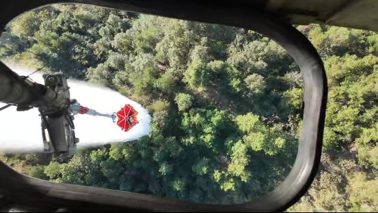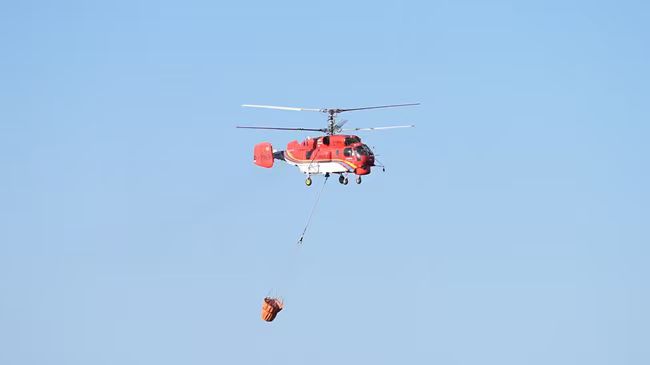 直升机灭火主要采用投放水基弹、干粉罐和吊桶取水等方式。当日执飞的K-32直升机可挂装5吨水,相当于一辆中型水罐消防车的水量,对于初起火灾或者配合地面扑救效果显著。