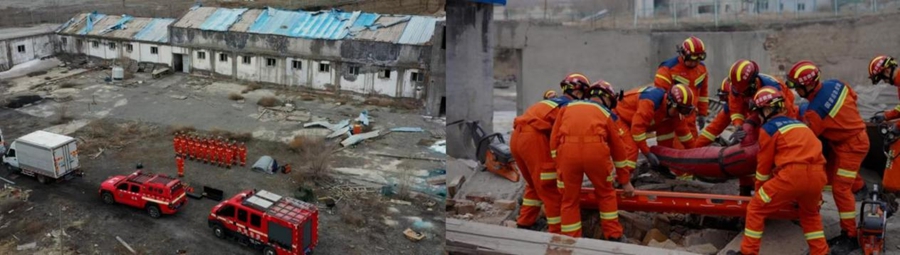 演练模拟某区域发生6.1级地震,造成矿区地面维修车间局部倒塌、1名工人失联,同时引发煤矿井下掘进巷道垮塌伴生阴燃火灾、综采工作面漏顶,共3名矿工被困。灾情发生后,自治区应急管理厅迅速启动应急响应,按照“就近调度、梯次增援”原则,跨区域调集三支国家级救援力量协同作战。演练采取“地面—井口—井下”一体化指挥、分区域同步实施的方式,在自治区安全生产综合基地和宝新昌佳石灰制品有限公司两个场地同步展开,完整呈现了从接警响应、应急启动、力量投送到现场指挥、灾情处置、后期处置的应急管理全链条。