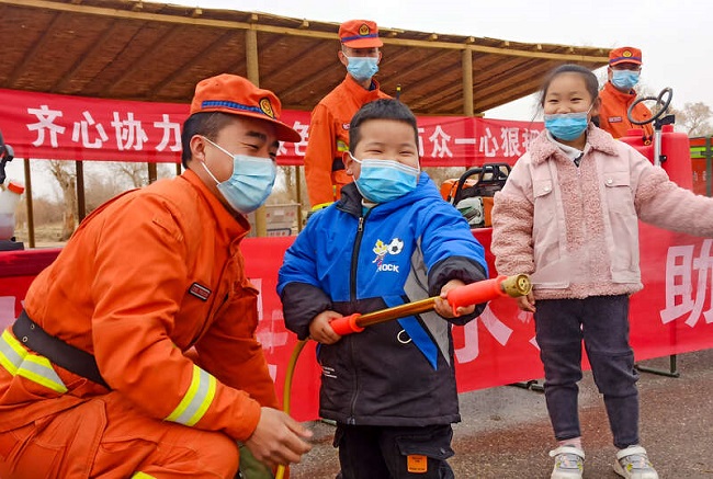 在尉犁县罗布人村寨景区,驻防森林消防员深入景区开展森林防火科普宣教,向景区游客以及牧民发放森林防火公益鼠标垫、笔记本等公益用品,景区设立展板、张贴宣传条幅、发放科普宣传手册,向过往游客耐心讲解林区防火事项,普及日常生活中火灾应急逃生等消防安全知识。