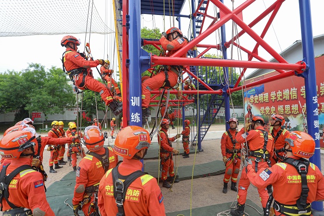6月9日,第一期绳索救援教练员培训在甘肃天水开班,正式拉开活动序幕。该总队百名绳索教练员汇聚天水麦积山下,按照理论、实操、演练的步骤,练精个人绳索技能、练强团队救援本领,助推队伍救援能力整体跃升。
