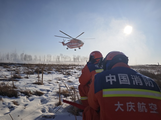随着塔台一声令下,“战鹰”腾空而起,迅速抵达预定空域开展训练。今年以来,东北地区降雪量增加,冰雪旅游热持续升温,突发紧急情况的概率增加。结合实际情况与飞行训练任务,支队以“直升机+特勤队员”为主导开展空地协同训练。