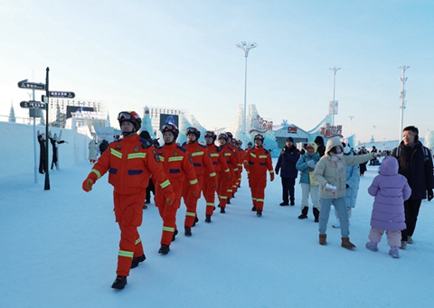 该支队三大队代理政治委员郭凤纯被问到冰雪大世界安全保障工作怎么高效开展时,如数家珍。“我们基于‘定点值守+动态巡逻+隐患排查’三位一体模式创造了一套独特的前置备勤法:定点值守像钉子般楔入要害,动态巡逻如血液流淌在园区脉络,隐患排查则织成了一张看不见的防护网。6条网格化巡逻路线,覆盖每一个角落、每一处风险点。”郭凤纯说,开园以来,队员们累计排查消除各类隐患60余处,化身冰雪大世界里的“移动安全岗”。