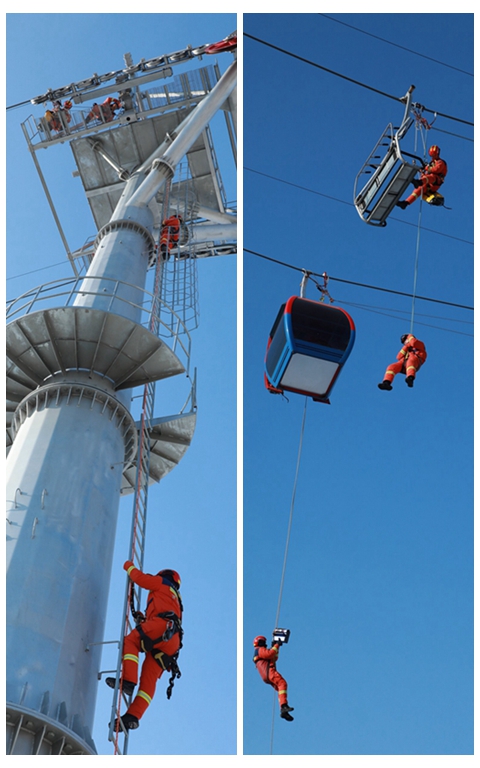 “一组攀爬塔架固定绳索,二组启动升降系统,三组下放救援装置!”一声令下,消防员如离弦之箭,迅速抵达各自点位。