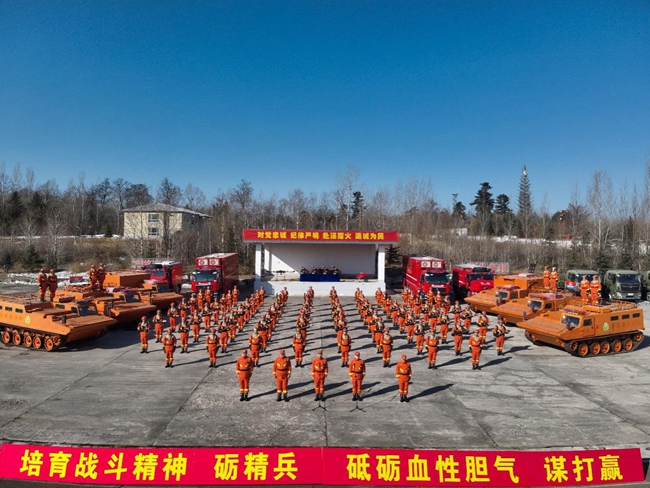 此次誓师大会是支队立足“一区两线一园”,即长白山核心区,延边中俄、中朝边境线,东北虎豹国家公园重点区域,紧扣春防“气温偏高、大风集中、风险突出”的火险形势。大会现场,战旗飘扬、士气高昂,指战员们身着战斗服、肩扛救援装备,整齐列队、神情坚毅,充分展现了“召之即来、来之能战、战之必胜”的铁军风貌。