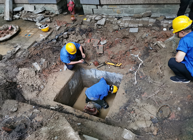 2020年6月19日,系统监测到合肥高新心血管病医院门口一燃气井燃气浓度超标。图为燃气集团抢维修中心在现场寻找漏点。
