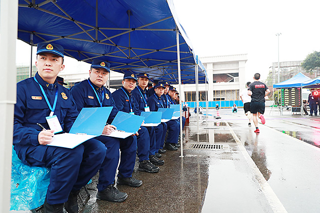 引入科技设备,精准裁判竞赛标准。一是引入人证合一检录系统。该系统基于先进的人脸识别技术,能够自助、高效、精准地完成人员信息的检录工作,不仅能够自动识别身份证真伪,杜绝冒名顶替等情况的发生,还能够实现检录信息的追溯,科学记录和备案人员信息,有效确保竞赛公平。二是引入由中国田协认证的电子计时装置技术。该技术所含的源芯片计时系统,可精准对30余人同时冲线时的成绩记录;系统采用的电子计时仪,计时精度达1/50000秒。两大系统的引入和应用,有效统一了评判标准。三是重庆市消防救援总队还协调重庆市公证处,派驻两名公证人员全程跟踪此次比赛,为各队竞赛成绩进行公证,确保了整个赛事的公平公正。