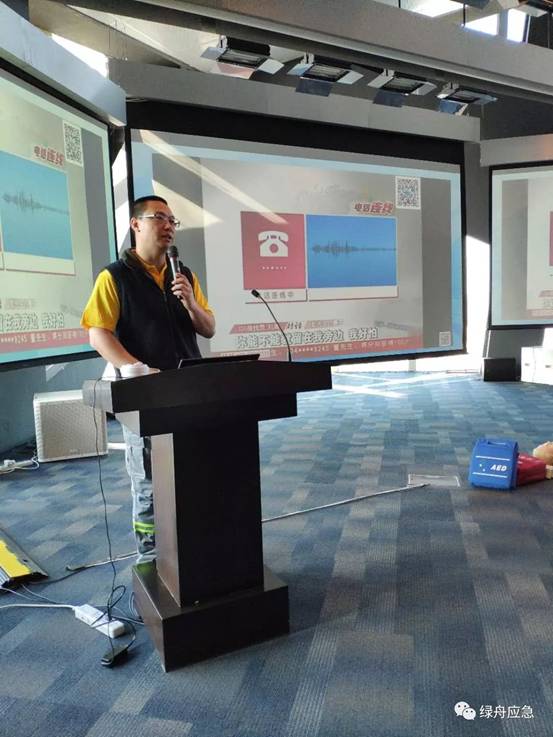 2019年2月15日,北京绿舟应急救援促进中心的9位教官走进央视大楼,为社会与法频道的80多位编导和制作人员开展了一场院前医疗急救培训。根据多数学员的工作性质,教官们将培训主要内容定为心肺复苏与创伤包扎。希望众编导和制作在今后的生活与工作中掌握正确的急救知识并使这些知识获得更广泛的普及。