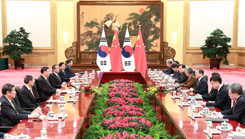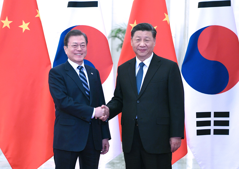 12月23日,国家主席习近平在北京人民大会堂会见韩国总统文在寅。新华社记者 庞兴雷 摄